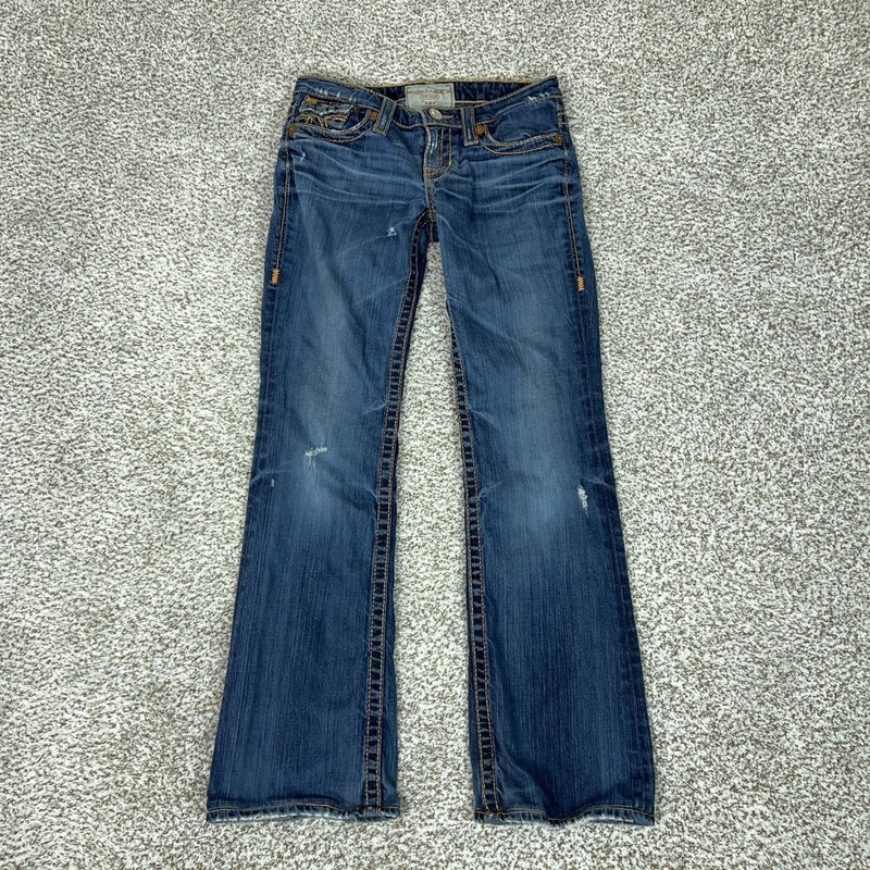 Big Star Jeans Womens 28L Liv Blue Low Rise Bootcut Distressed Stretch Denim USA