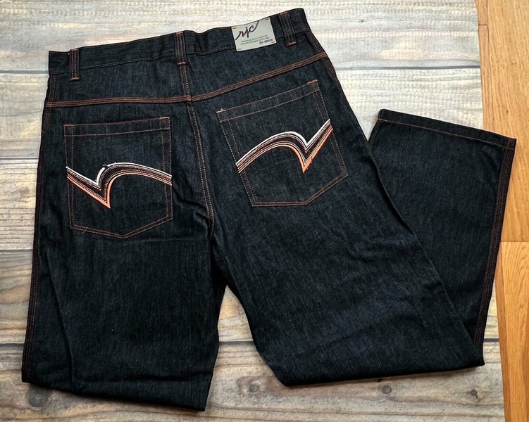 RJC Big Stitch Boot Cut Wide Leg Denim Jeans Black, Men's 38x32