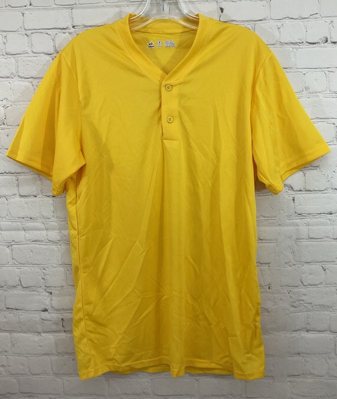 Alleson Athletic Adult's 100% Polyester Mesh 2-Button Baseball Jersey Yellow MD