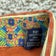 Color/Pattern: Beige ground with orange, blue, green, and navy stripes, decorative embroidered trim along the front placket and shoulder yoke, and bright floral contrast print inside the collar over an orange inner yoke.
