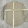 Style: Mens long sleeve button-up shirt with a beige base and multicolor vertical stripe pattern.
