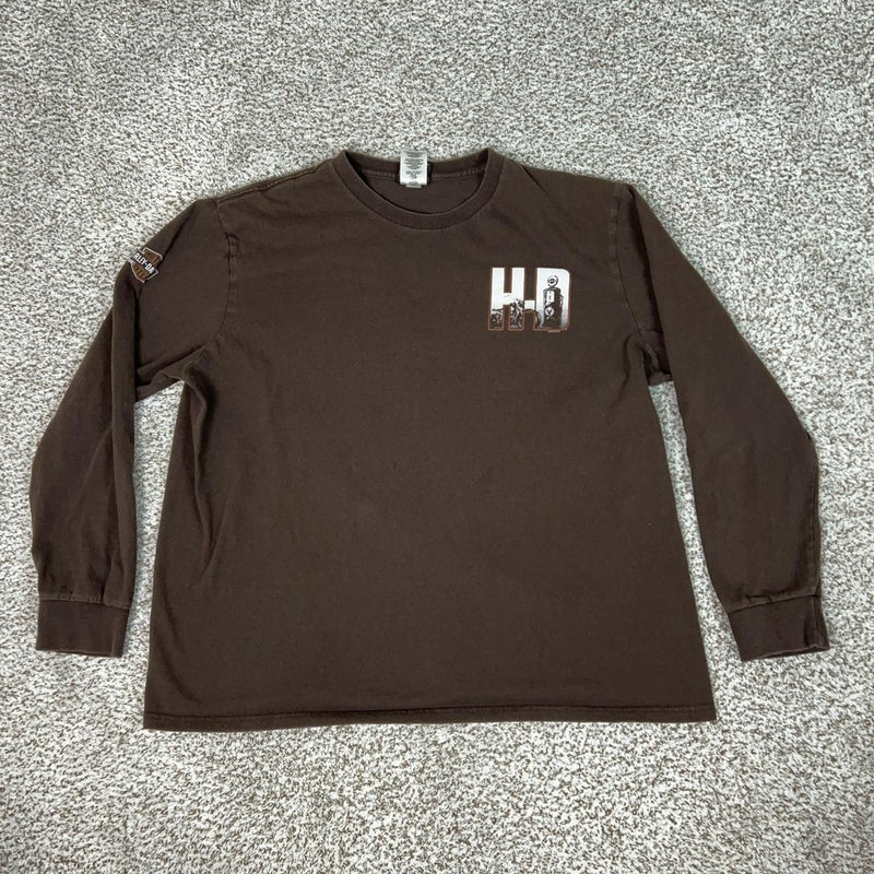 Harley Davidson Shirt Mens XL Brown Long Sleeve Tee T Biker Graphic Manitowoc