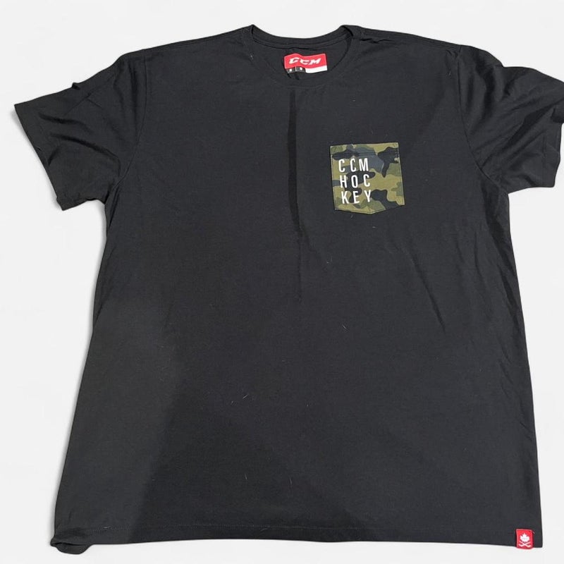 CCM Hockey T-Shirt – Black with Camo Pocket (XL)