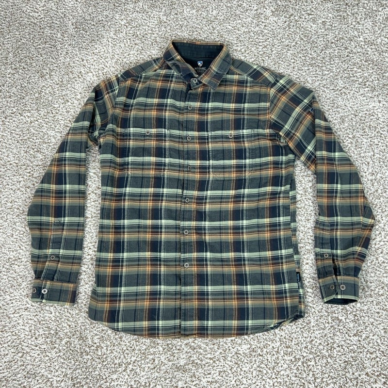 Kuhl Shirt Mens Small Green Plaid Flannel Long Sleeve Button Outdoor Dillingr