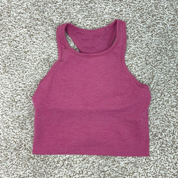 Lululemon Tank Top Womens Small Pink Cropped Racerback Yoga Built In Bra Workout