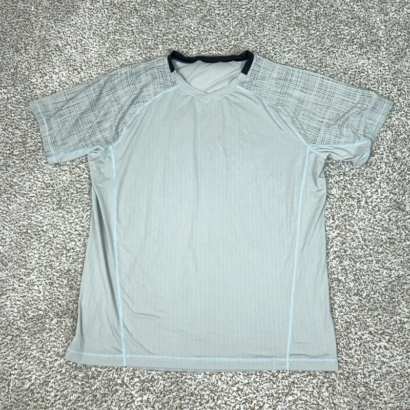 Lululemon Shirt Mens Large Gray V-Neck Short Sleeve Athletic Running Gym Tee