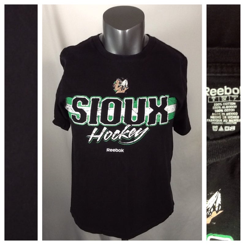 North Dakota Fighting Sioux Hockey T Shirt (Small) UND Reebok Black Tee