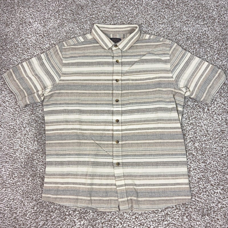 Pendleton Shirt Mens XL Beige Stripe Short Sleeve Fitted Cotton Button Casual