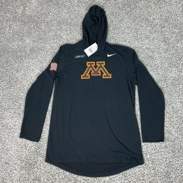 Minnesota Golden Gophers Shirt Mens Large Black Nike Hooded Dri Fit Football