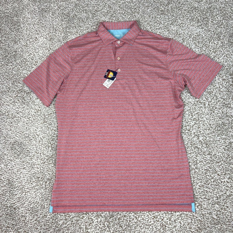 Johnnie O Polo Shirt Mens Large Red Stripe Prep Formance Golf UPF 50 Stretch