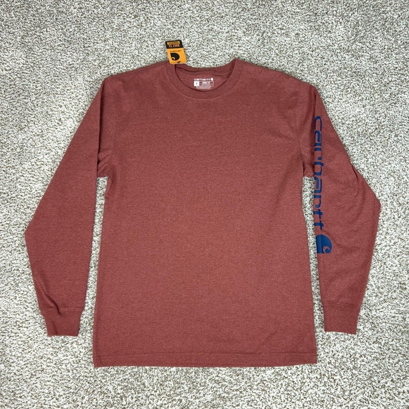 Carhartt Shirt Mens Small Red Long Sleeve Loose Fit Logo Sleeve Tee Workwear