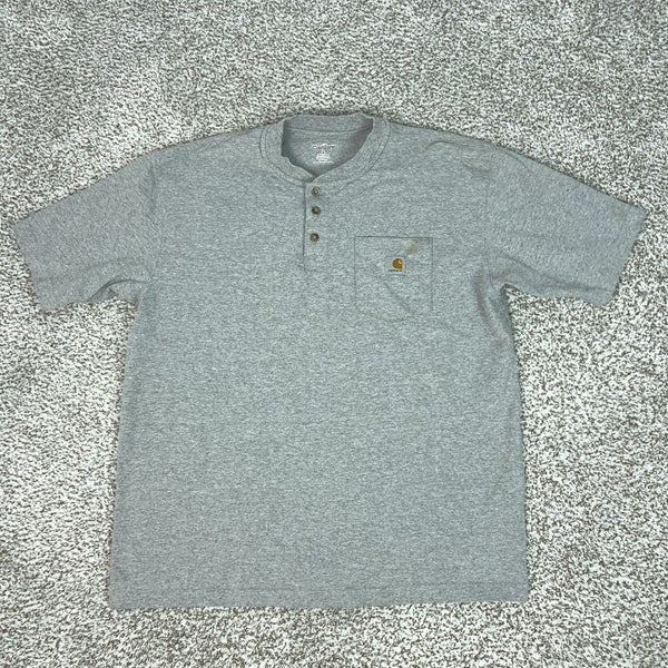 Carhartt Shirt Mens Large Gray Henley Pocket Workwear Short Sleeve Tee T Logo