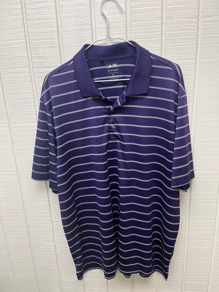 Adidas Golf Polo Shirt Men’s XL Purple Striped Casual Activewear Sporty Colorful