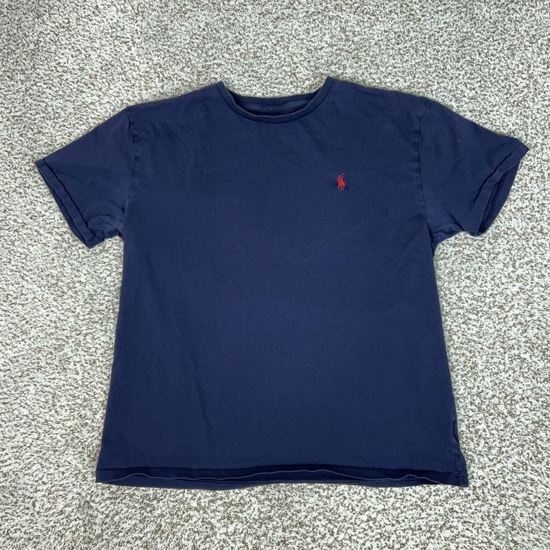 Polo Ralph Lauren Shirt Mens Medium Blue Cotton Crewneck Red Pony Logo Tee T
