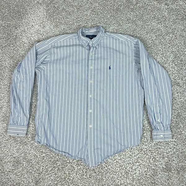 Ralph Lauren Blake Shirt Mens Large Blue Stripe Long Sleeve Button Down Cotton
