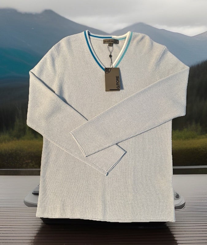 g/Fore Golf Sweater Baja Blue White Aqua Mens medium New W/ tags $295 100% Wool