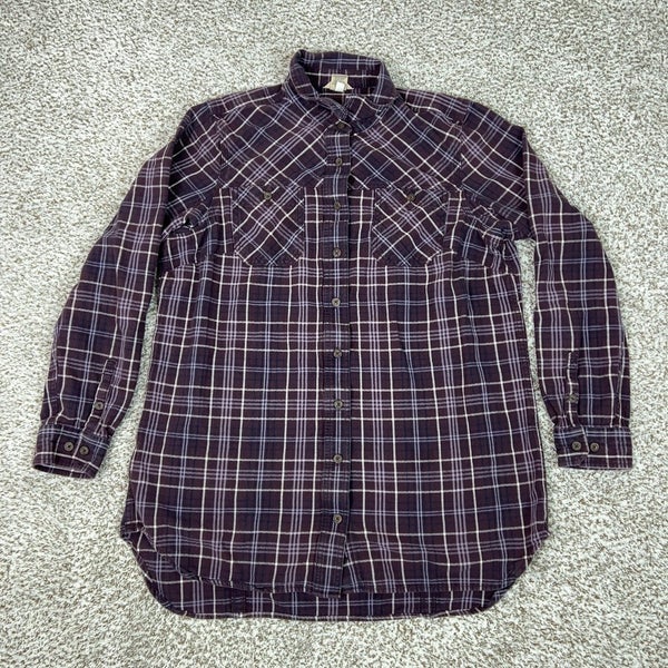 Duluth Trading Co Shirt Womens Large Purple Plaid Flannel Button Tunic Casual