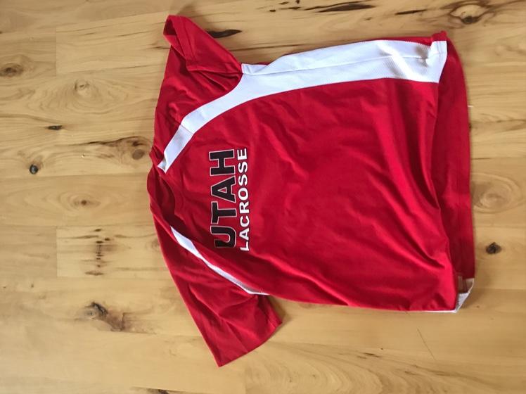 Team gear from the newest Division 1 lacrosse program, the University of Utah Utes! Red Shooter Shirt, worn in games and practice, large and fits like it