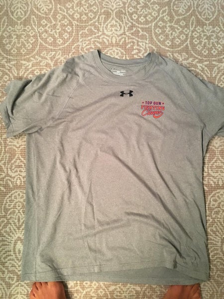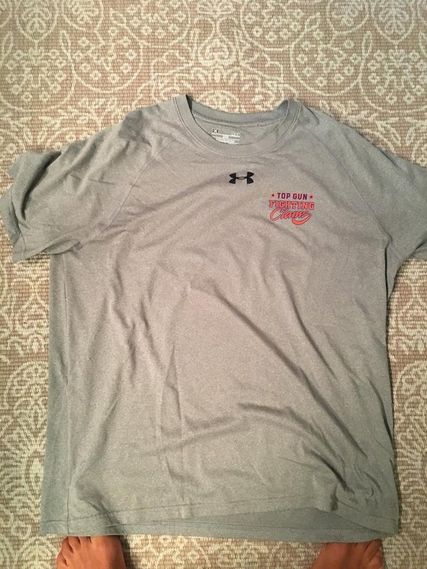 Never worn under armor heat gear Top Gun Fighting Clams athletic shirt. Gray with custom clams logo with lettering on front, and fighting clam logo on back under the neck. Size large. No stains, rips, cuts, or anything. Great for working out, playing lacrosse, or casual wear.