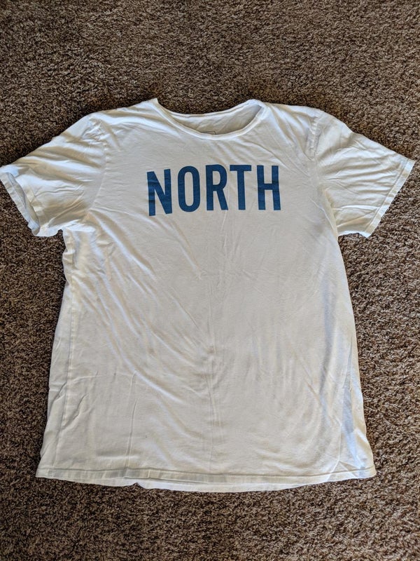 Lightly worn. XL, and is slightly longer than usual. Nice for those who like longer t shirts.