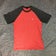 Volcom Mens Shirt Medium Red Gray Short Sleeve Tee Raglan Logo Casual Sport Top