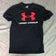 Under Armour Mens Shirt Small Black Red Short Sleeve Tee Logo Casual Heatgear