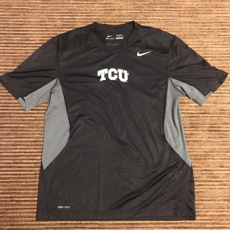 Black TCU Nike Dri Fit Shirt. Only noticeable wear on it is the upper right hand corner of the TCU logo. Other than that, excellent condition.