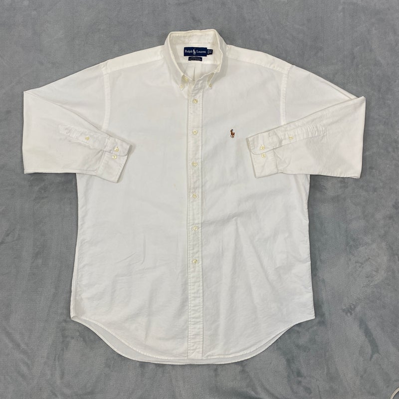 Vintage Ralph Lauren YARMOUTH Shirt Men 16 1/2 White Cotton Oxford Blue Label