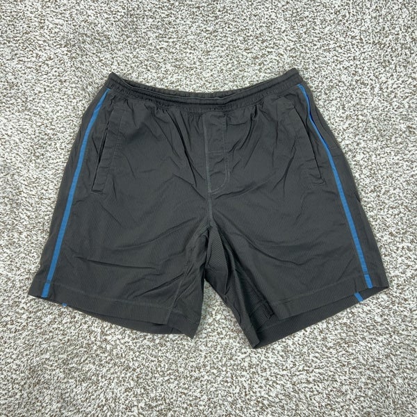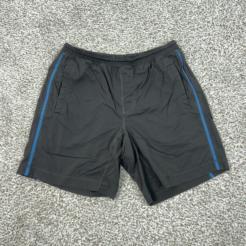Lululemon Shorts Mens Large Gray Lined Running Stripe Blue Trim Athletic Gym