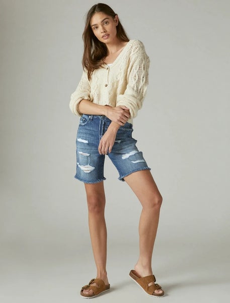 Lucky Brand 90s Loose Cut-Off Shorts Women 26 Blue Denim Distressed Grunge JZZ76