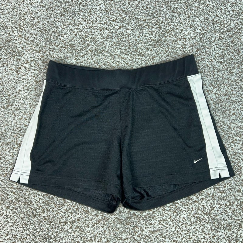 Nike Shorts Womens Medium Black White Mesh Running Athletic Striped Gym Sports