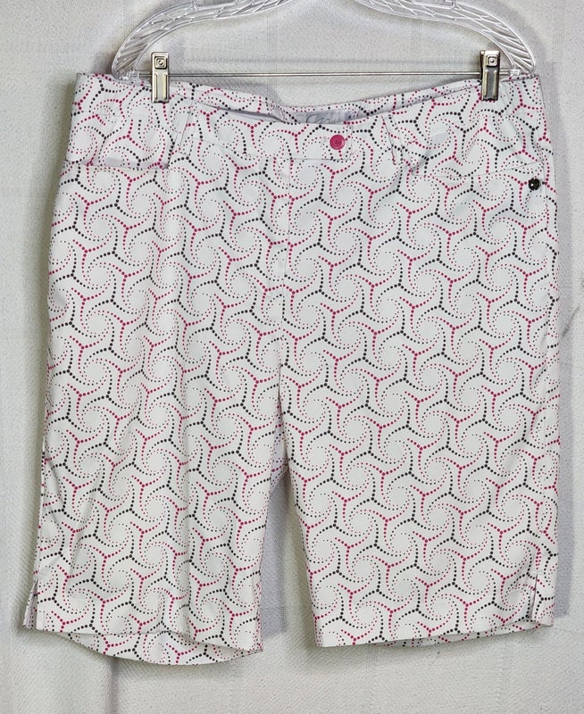 Cracked Wheat White with Pink Grey Dots Size 18 Women's Golf Shorts (New)