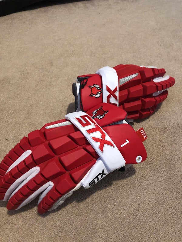 Brand new stx surgeon college lacrosse gloves. Un-Used. For any play player.
