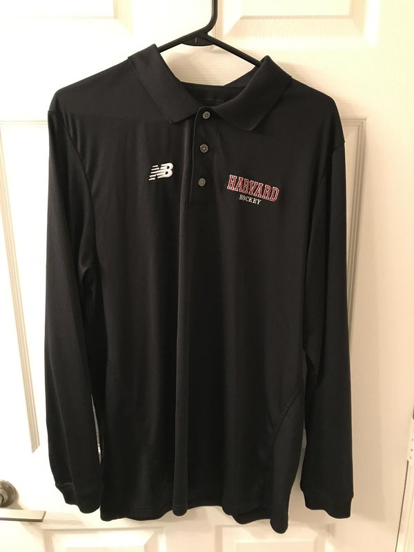 Size extra large black official team issued Harvard Hockey long sleeve polo. Shirt is New Balance dry-fit material, and is in great condition.