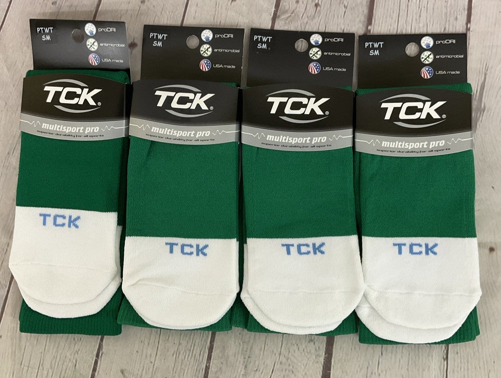 TCK MULTISPORT proDRI Performance Athletic Socks Kelly Green White Small 4-Pack