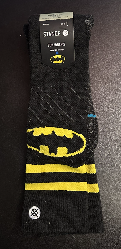New snowboarding socks with Batman logo. Warmer and thicker than Stance's baseball socks.