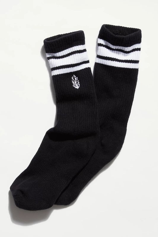 FP Movement Logo Stripe Tube Crew Socks Women Black White Stretch Ribbed DSGL205