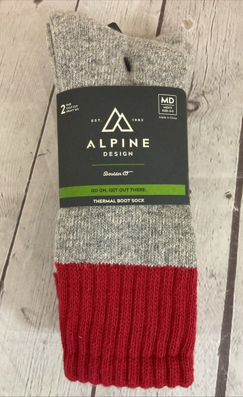 Alpine Design Calf Cut Thermal Boot Socks Grey Red MD 6-9