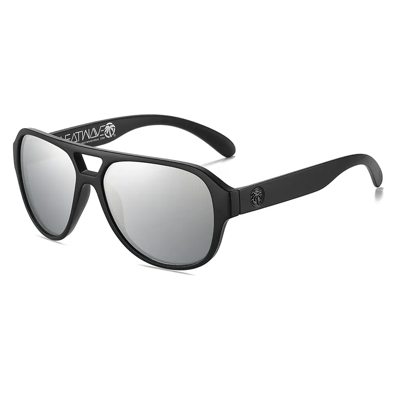 Heatwave Supercat Z80 Aviator Sunglasses Matte Black Frame Silver Mirror H38