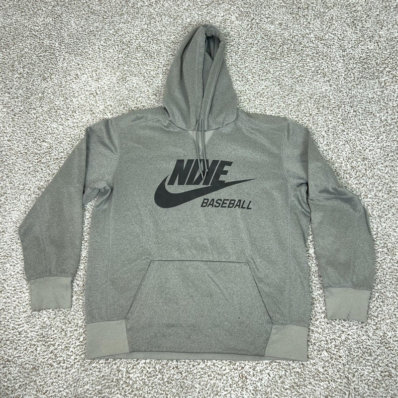 Nike Baseball Hoodie Mens XL Gray Pullover Sweatshirt Fleece Graphic Logo Sport