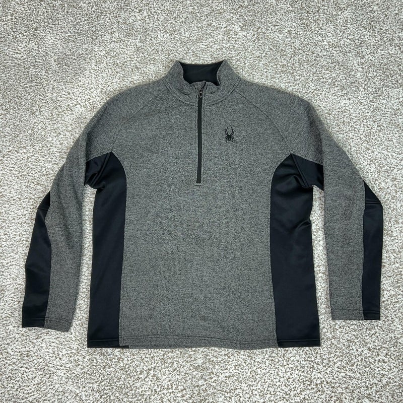 Spyder Pullover Mens XL Gray Black Quarter Zip Fleece Core Sweater Ski Outdoor