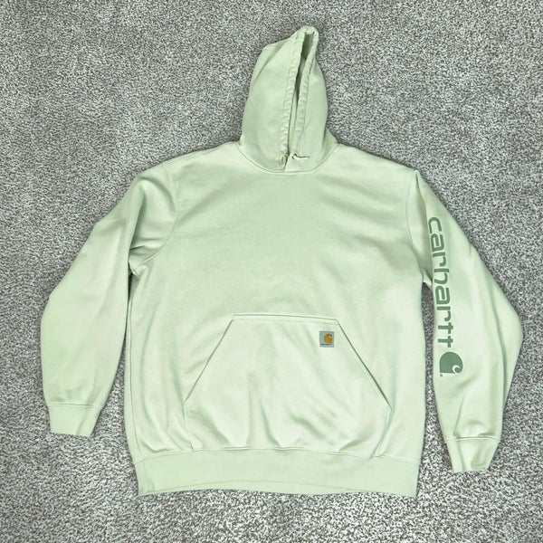 Carhartt Hoodie Sweatshirt Mens 2XL Green Loose Fit Sleeve Logo Fleece K288