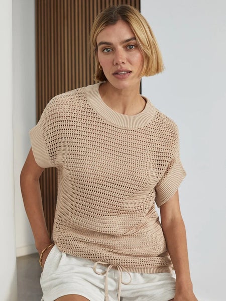 Varley Corvallis Sweater Women's Medium Moonlight Open Knit Drawcord Hem GBO2101