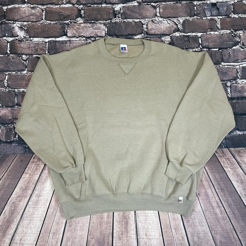 Vintage Russell Athletic Blank Plain Crewneck Sweatshirt Mens XXL Beige Brown