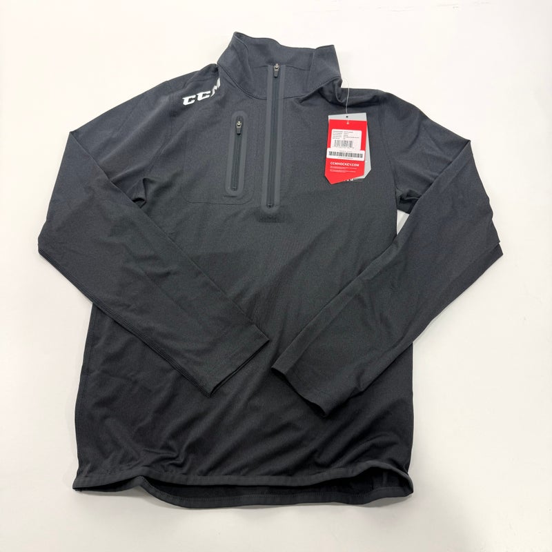 New Black CCM Youth Premium 1/2 Zip Long Sleeve Shirt | Youth L | #191520221829