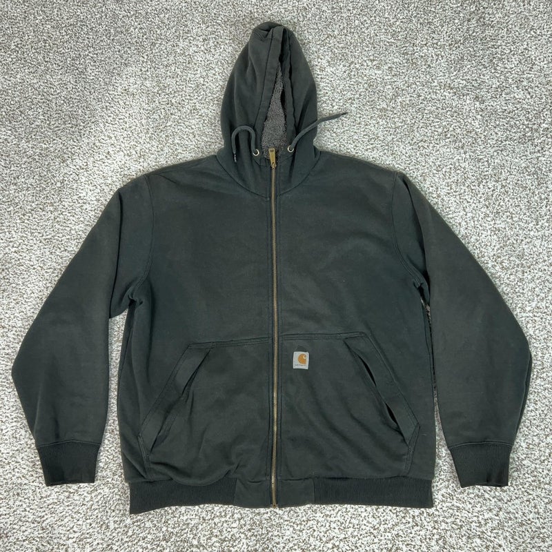Carhartt Hoodie Mens Large Black Sherpa Lined Full Zip Rain Defender Workwear