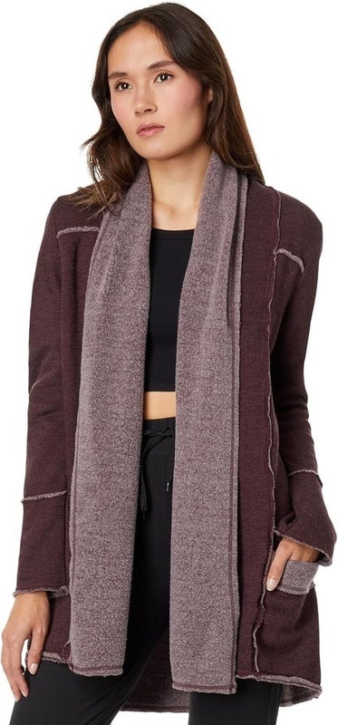 Hard Tail Sherpa Slouchy Cardigan Sweater Women Medium Red Plum Pullover ERK1181