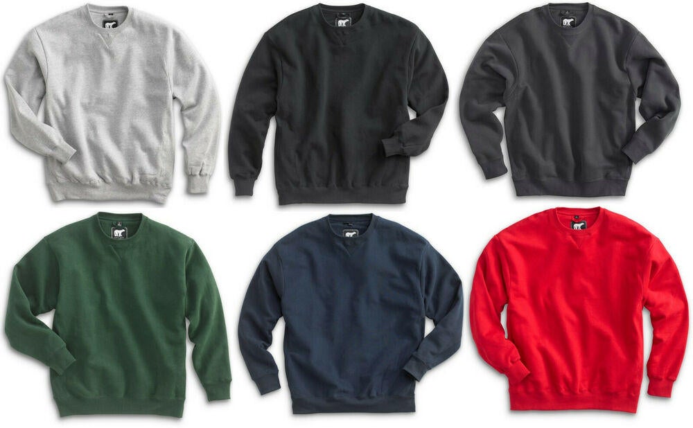 White Bear Men's Heavyweight Crew Neck Sweatshirt Long Sleeve Crewneck 1500