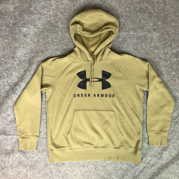 Under Armour Mens Hoodie Medium Beige Black Sweatshirt Sports Pockets Loose Top