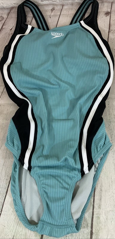 Speedo Womens One Piece Open Back Lined Swim Suit Size 6 UPF 50 Racing Cut